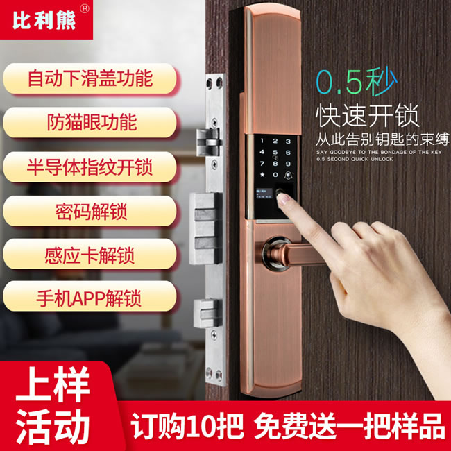 • 比利熊智能鎖 D3全自動(dòng)自動(dòng)滑蓋指紋鎖