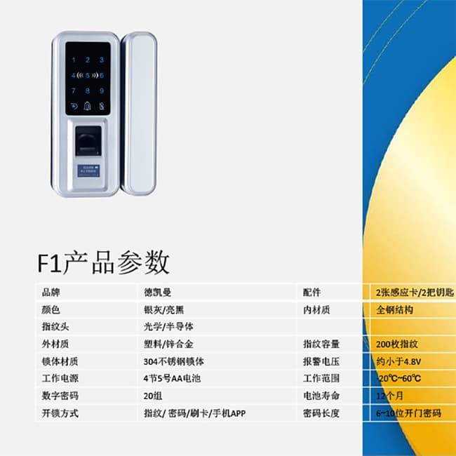 • 德凱曼智能鎖 A1時尚滑蓋指紋密碼智能鎖