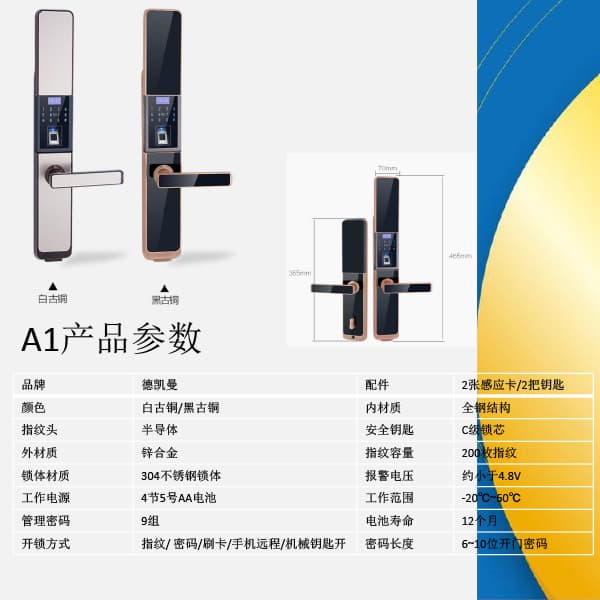 • 德凱曼智能鎖 A1時尚滑蓋指紋密碼智能鎖 中山市華曼智能科技有限公司