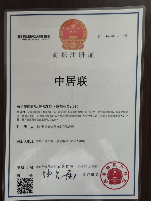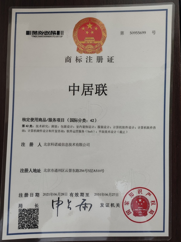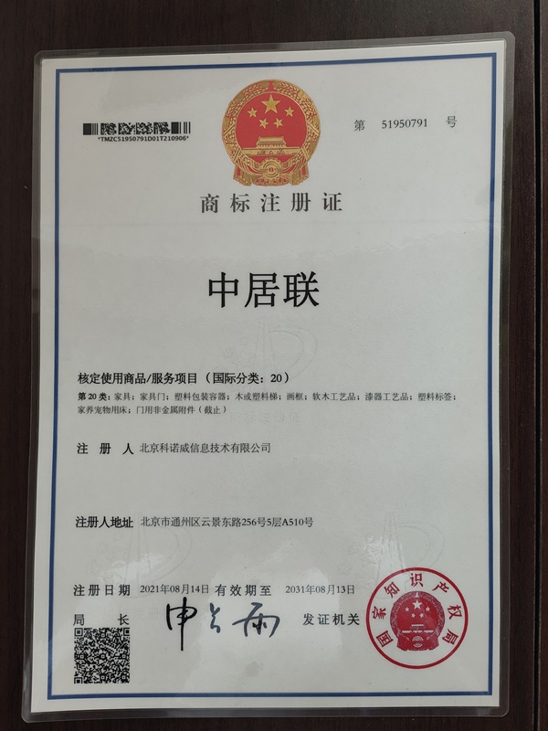 中居聯,英文名 China Custom Home Alliance 【CCHA】,曾用名:中國定制家居聯盟。中居聯隸屬于北京科諾威信息技術有限公司,品牌發起于2009年,中居聯非常重視品牌保護,旗下注冊商標如下: