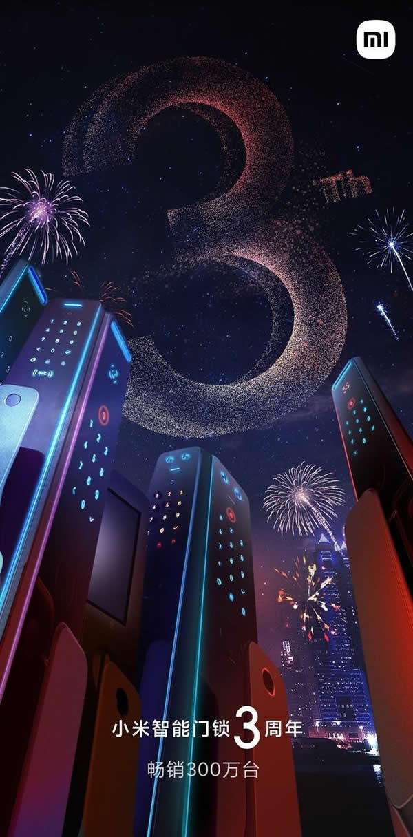 來自小米的消息顯示,小米智能門鎖上市3周年,推出了9款產品,銷量突破300萬,最新產品支持3D結構光,可以進行人臉識別,走到門前自動刷臉,全程無感解鎖。 2019年3月,第一款小米智能門鎖發布,支持3D半導體指紋識別。第一