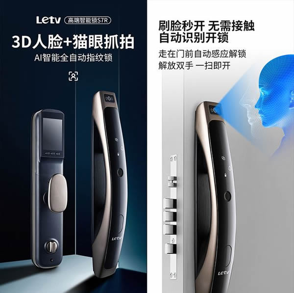 這款全新的智能門鎖命名為樂視S7R,它的最大亮點在于支持3D人臉識別,今年的智能門鎖市場3D技術得到了廣泛應用,因此樂視也在智能門鎖上加入了這個功能,有了這個功能后可以直接刷臉自動感應解鎖,并且由于是3D識別所以安全系數也相對較高,不用指紋也能順利解鎖了。當然指紋,貓眼和監控等功能也都一應俱全,這個配置給出1499元的定價,確實也稱得上有不錯的性價比了。