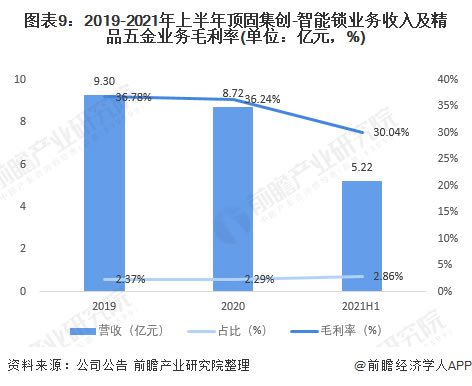 受銷售折扣力度增加的影響,2019-2021年上半年,公司精品五金業務毛利率總體呈下降趨勢。