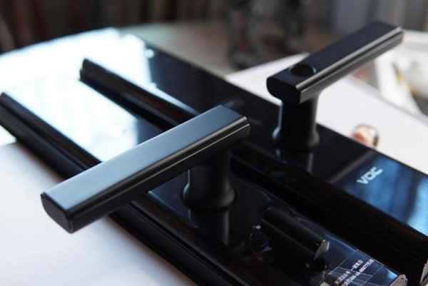 外面板底部設置了備用機械鑰匙,鑰匙使用的C級鎖芯,鎖孔在底部,不再是貫穿鎖體的開門方式,而是通過傳動控制鎖體上的開鎖鉆孔,解鎖外門把對鎖體的控制來開鎖,不容易被技術開啟。也不裝在正面,非常的美觀,也不會被小孩子破壞了,或者身上異物。