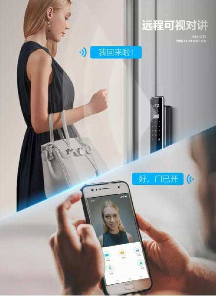 遠程可視對講功能是K8007B的另一特色,當用戶不在家時,可以隨時查看門外情況,還可以進行錄像、拍照。內鎖搭載了4寸高清顯示屏,不用開門就可以清晰看到門外情況。