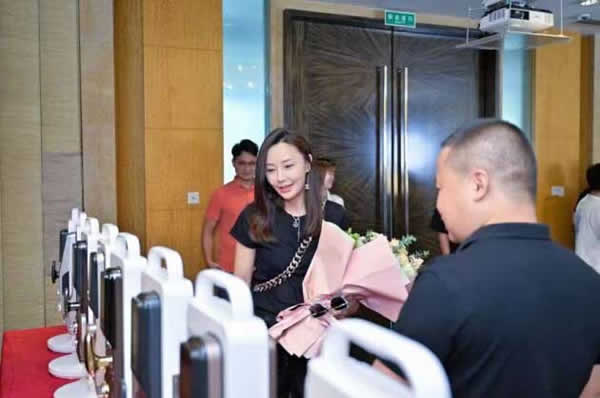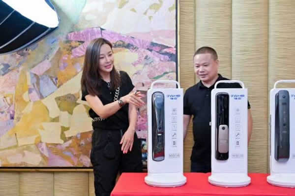 佳合智能門鎖品牌創始人、總經理胡明翻,為馬雅舒細心介紹了佳合的智能門鎖產品,兩人相談甚歡。