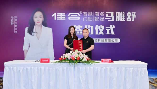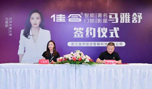 隨后,佳合智能門鎖品牌創始人、總經理胡明翻與馬雅舒舉行隆重的簽約儀式,雙方鄭重簽名,馬雅舒正式成為佳合品牌形象大使,與佳合共同守護千家萬戶!