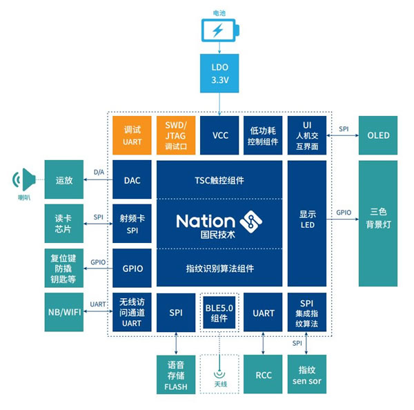 提供“國民技術MCU+指紋算法+TSC觸控+藍牙”單芯片方案