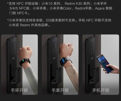 這款產品也支持NFC感應開鎖,使用小米手環、小米手表或者小米手機輕輕一刷即可快速解鎖。