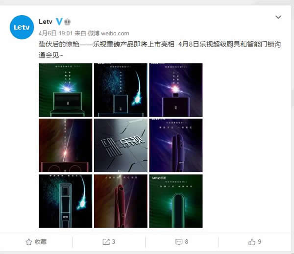 4月6日,樂視宣布將于4月8日舉辦樂視超級(jí)廚具和智能門鎖溝通會(huì),屆時(shí)將帶來一大波新品。