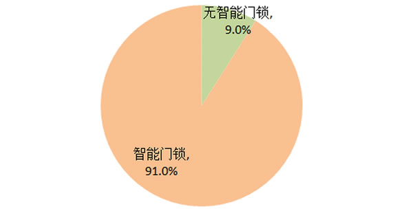 智能門鎖作為業(yè)主入戶觸發(fā)的第一個(gè)家居設(shè)備,目前已經(jīng)普遍應(yīng)用于新建住宅中,應(yīng)用占比高達(dá)91%。