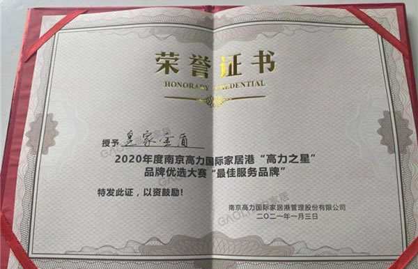 皇家金盾人臉鎖多年來秉承“創新、智造、品質、誠信、工匠精神”做產品,以“服務全球每一個家庭”作為企業愿景,扎實腳步,行穩致遠,推動行業高質量發展,以優質的產品獲得了市場的肯定及消費者的喜愛。此次獲2020年度南京高力國際家居港“高力之星品牌優選大賽最佳服務品牌”,再次感謝消費者的選擇與信賴。